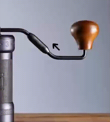 取り扱い説明書 - X-Pro コーヒーグラインダー お手入れの際に水を使用しないでください。 目次 挽き目調整 調整ダイヤルを反時計回りに回すと、挽き目が細かくなります(逆もまた同じ)。お好みの挽き目に調整するには、まず反時計回りに回して「0」と本体の目印を合わせてください。挽き目がもっとも細かい設定となり、調整ダイヤルを回す際には抵抗感があります。注意:必要以上に調整ダイヤルを締めないでください。調整ダイヤルは合計4.5周、1週あたり60クリックとなります。1クリックあたり0.0125mm単位で調整可能です。各淹れ方の挽き目の目安を参考に、お好みの挽き目に調整してください。コーヒー豆を本体の上から入れ、アームハンドルを時計回りに回して挽き始めてください。ミルを分解し、組み立てた後は1の説明に従って挽き目を再調整してください。 折り畳み式ハンドル (X-Pro S) 折り方 ノブに近い部分を握って押し込みます。 ハンドルを時計回りに回して折ります。 伸ばし方 ノブに近い部分を握って押し込みます。 ハンドルを反時計回りに回して伸ばします。 分解方法 注意:ステップ5までに外刃を外さないでください。 調節ダイヤルを時計回りにおよそ2周半回してください。 2. 内刃を指先で押し上げてください。 3. つまみナットのドットマークとシャフトの平面部分が一直線になるように、つまみナットの向きを指先で調整してください。 4. 内刃とシャフト、バネ、下部のベアリングキャップを本体下部から取り外してください。 5. つまみナットを取り外してください。 6. 外刃を時計回りに回して取り外してください。 組み立て方法 外刃を取り付け、動かなくなるまで時計回りに回してください。 2. 下部のベアリングキャップとバネを正しい順番でシャフトに取り付け、内刃ごと本体の下から挿入してください。※ベアリングキャップは突起のある面が上向き 3. つまみナットを取り付けてください。※ドットマークのある面が上向き 4. 内刃を指先で押し上げてください。 5. 上から見た時に、つまみナットのドットマークとシャフトの角が一直線になるようにつまみナットの向きを指先で調整してください。 正しい調整ダイヤル位置の設定 調整ダイヤルを反時計回りに回し、抵抗を感じるところでストップ。「0」と本体の目印が直線上にあるかを確認してください。 2. もし直線上にない場合は、調整ダイヤルを取り外してください。 3. 「0」と目印が直線上になる位置で、調整ダイヤルを再度取り付けてください。 注意事項 水洗いしないください。水とアルコール以外の成分でパーツを拭かないでください。長持ちさせるために、できるだけ乾燥した環境で保管してください。組み立ては取り扱い説明書を参考にし、パーツを正しい位置にセットしてください。安全性の観点から、お子様が触れることのない場所で保管してください。